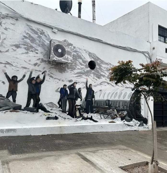 En Osorio y Plácido Ellauri, un hermoso mural con firma de Grafopress plasma la epopeya de solidaridad y supervivencia conocida como "la tragedia de los Andes" de la que se están cumpliendo 51 años. Vale la pena acercarse a admirarlo.